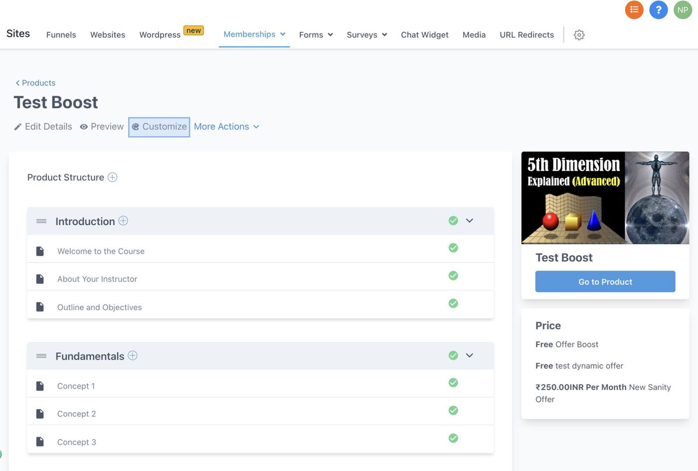 Sites->Membership->Products->Customize->Gallery>Customize>Sections—> Course Body